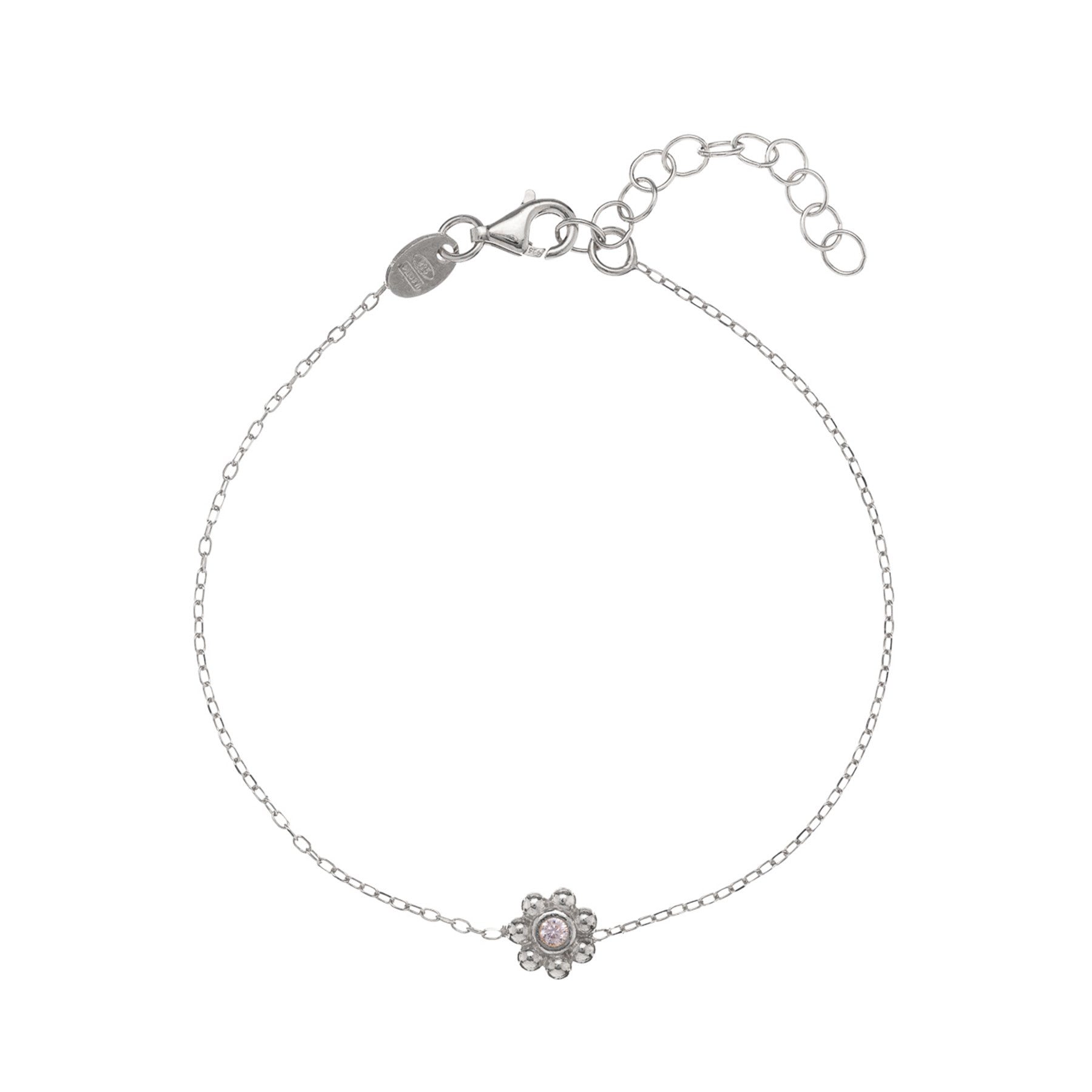 Bracciale in argento 925 con fiore pendente e zircone incastonato.